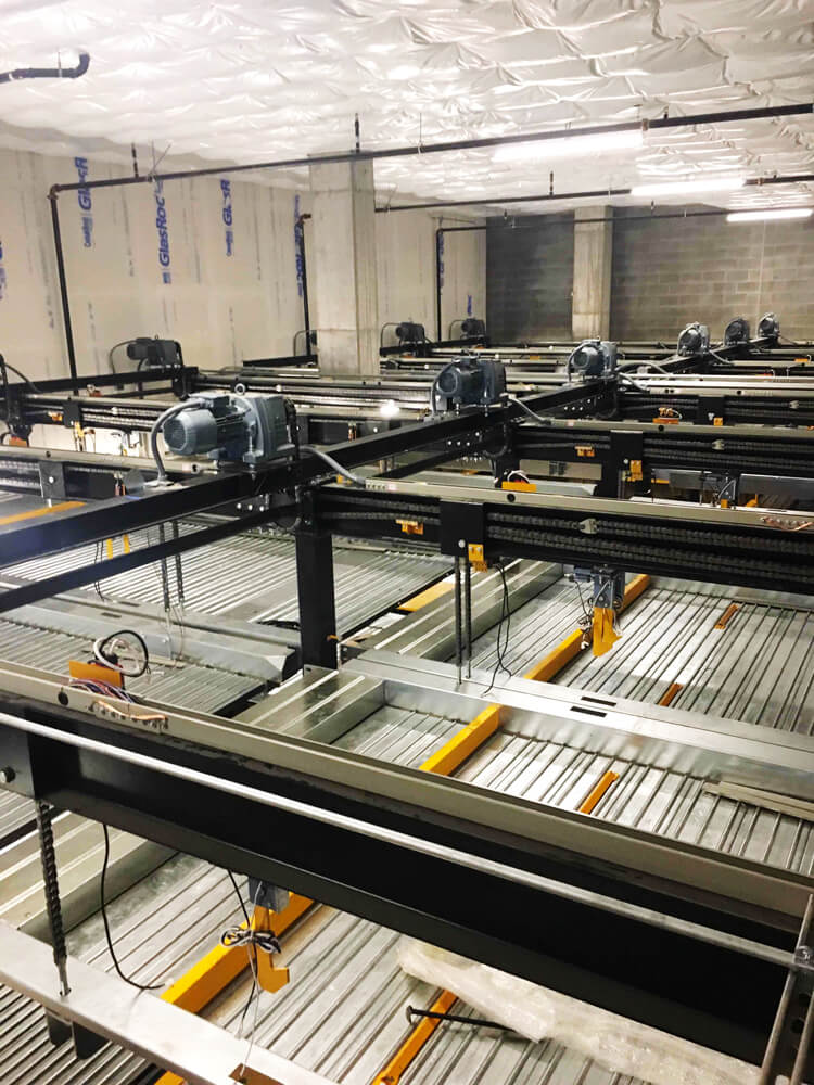 The scope of an APS installation includes the implementation of electromechanical devices that perform the automated parking function. SilMan mechanical and electrical teams were asked to assemble, build, and integrate this motor-driven structure.