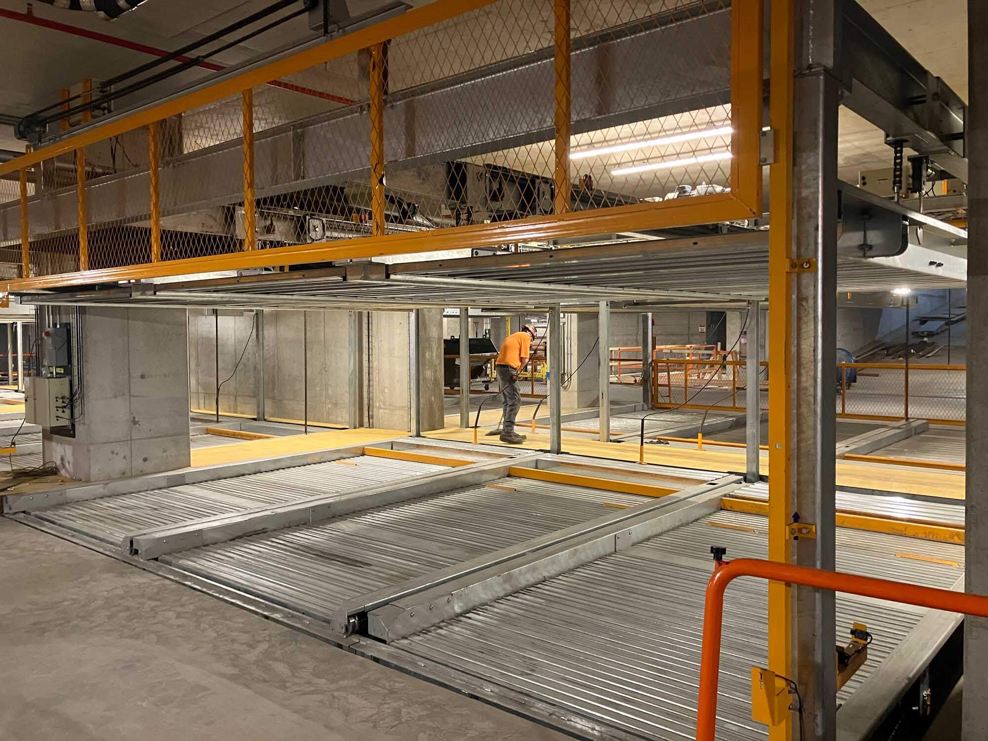 685 feet below the rooftop festivities, and down a few levels, lies a new mechanical parking system, designed to accommodate hundreds of vehicles. The system was engineered and installed by our automated parking team, known as SilMan Automated Parking Systems, or SAPS. The team has had boots on the ground since December 2022 and is scheduled to be complete in June 2024.
